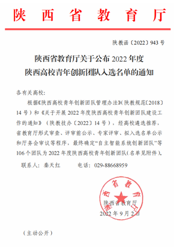 陕西省教育厅围绕国家及我省的重点研究领域和重点学科发展方向,依托重点科研平台或基地,培养和造就一批道德素质过硬,学术基础扎实,具有突出创新能力和发展潜力的青年创新团队,形成优秀人才的团队效应和能量聚集。经全省高校遴选推荐,省教育厅形式审查、评审前公示、专家评审、拟入选名单公示和厅务会审议等环节,最终确定2022年度陕西高校青年创新团队106 个。