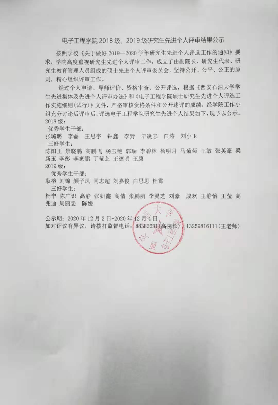 bevictor伟德官网2019-2020学年研究生先进个人评选结果公示