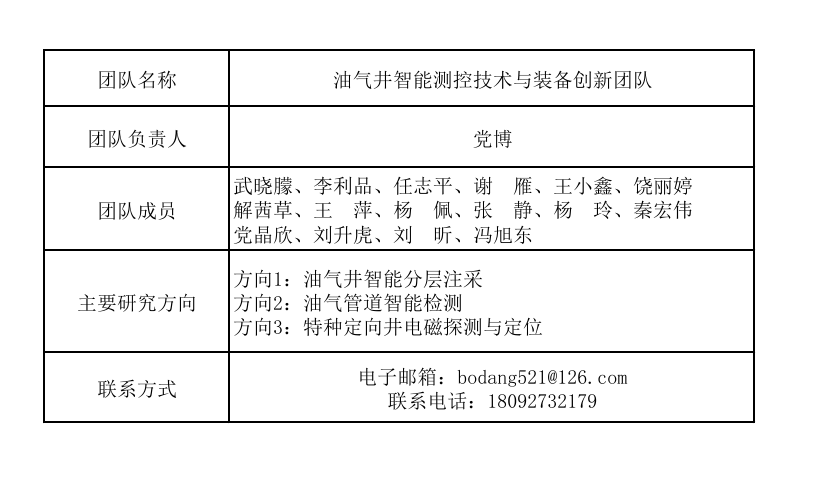 油气井智能测控技术与装备创新团队